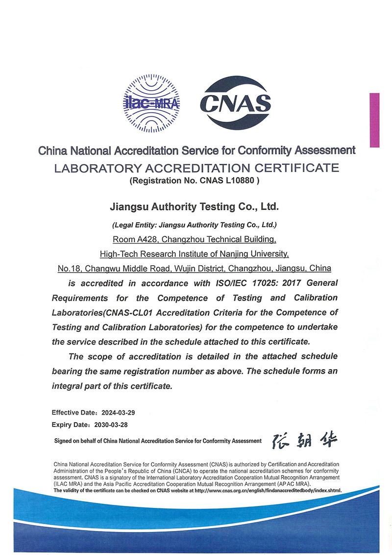 具備CNAS資質(ISO/IEC17025) 農藥檢測主要包括草甘膦、吡蟲啉、百菌清、2,4-滴等多種農藥原藥及其制劑的各項參數檢測,具備CNAS資質(ISO/IEC17025)。
